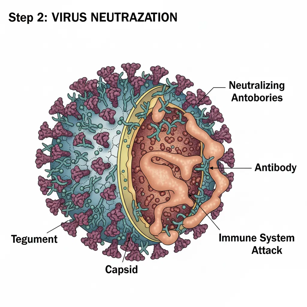 Then, it neutralizes the virus and exposes it to the immune system, where it can be destroyed