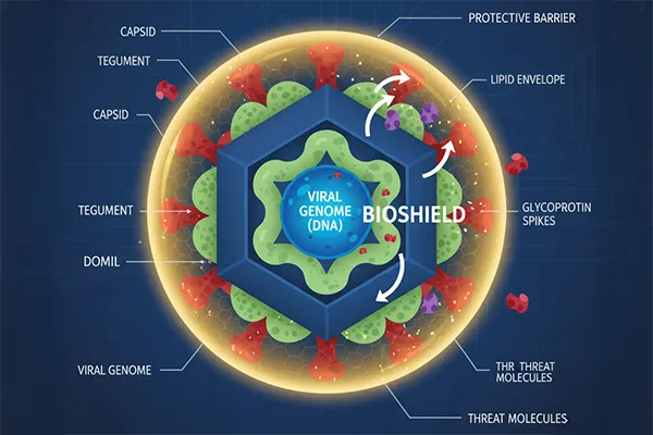Herpafend is designed to target this mechanism, known as the Herpes Bioshield, and neutralize it.
